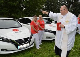 Generální vikář Martin Davídek pak poděkoval charitním pracovníkům za jejich úsilí a popřál jim bezpečné cesty, ať již ty za klienty či domů. Poté prezident Diecézní charity Litoměřice Leo Gallas novým vozům požehnal a posvětil je.