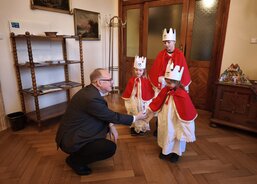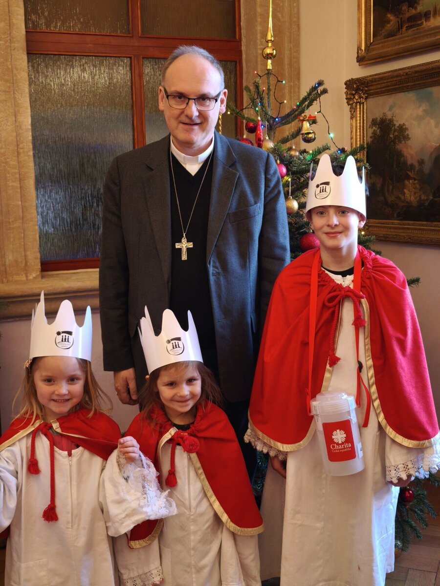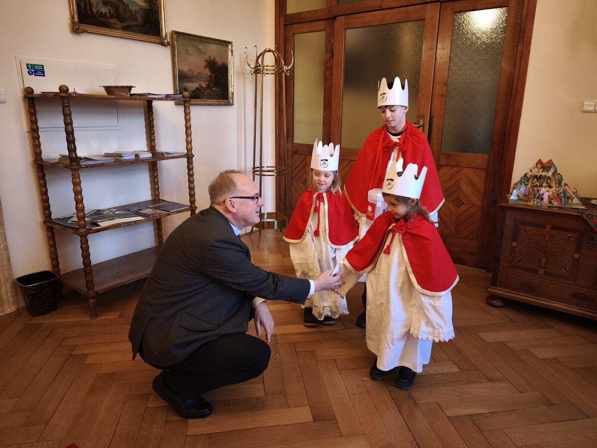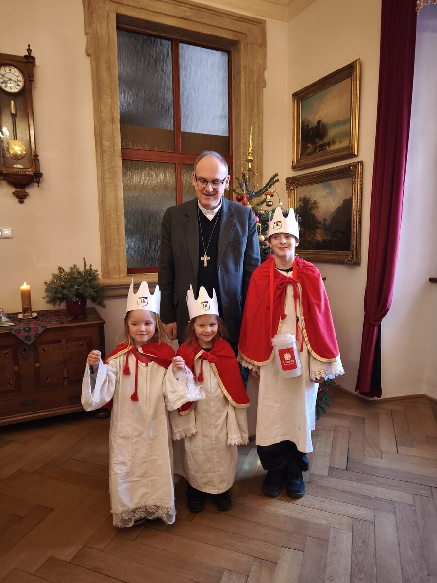 Pan biskup si na malé koledníky vyčlenil čas, vřele je přijal a vytvořil jim prostor, ve kterém se mohli cítit opravdu vítaní. Nechybělo pohoštění ani drobné dárky, ale především přátelská atmosféra a otevřený rozhovor. Koledníci se nebáli klást zvídavé otázky a pan biskup na ně s úsměvem odpovídal. Setkání bylo plné radosti i lidské blízkosti, která ke svátku Zjevení Páně neodmyslitelně patří.