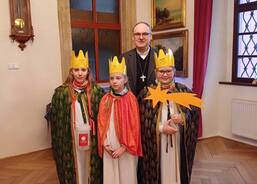 Na svátek Tří králů, tedy dnes 6. ledna, navštívily tři královny Mons. Stanislava Přibyla. Je již tradicí, že tři králové chodí za biskupy v doprovodu ředitelky Diecézní charity Litoměřice. Dnešek nebyl výjimkou, a tak trojici králů doplnila Adéla Švecová.